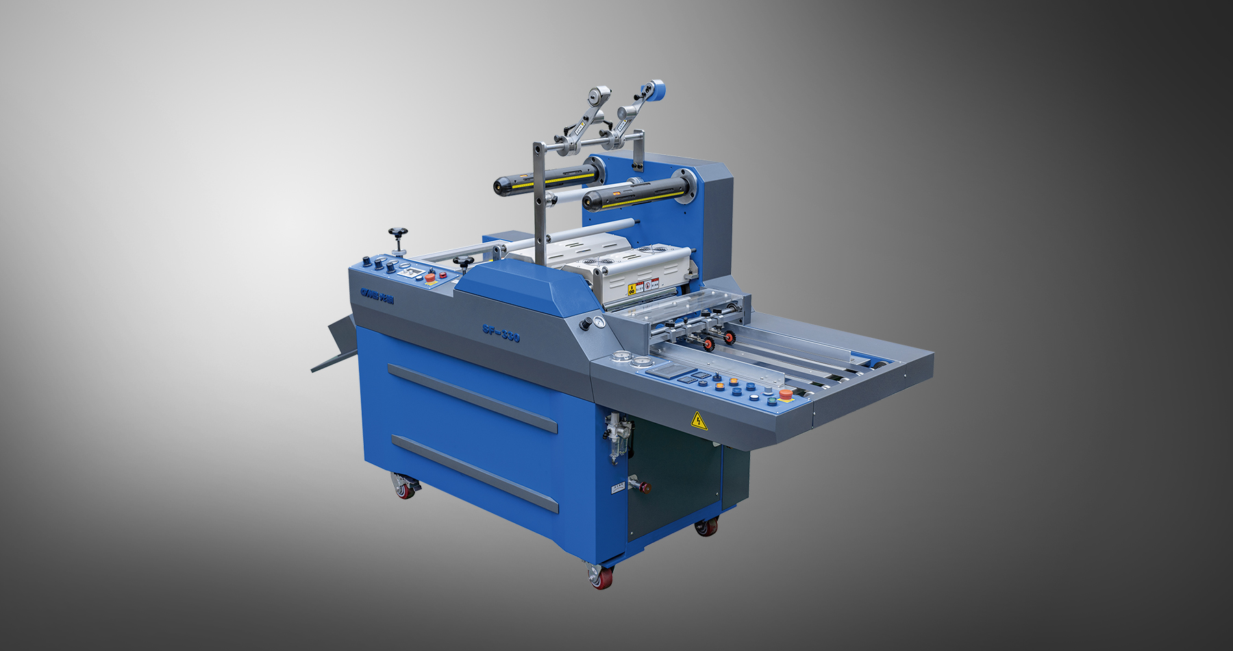 SFML-520B機(jī)型結(jié)構(gòu)緊湊,操作方便,電氣系統(tǒng)由可編程控制器集中控制,彩色觸摸屏,一人即可操作, 用戶只需輸入待加工的紙張尺寸,就能實(shí)現(xiàn)覆膜與分切兩道工藝。